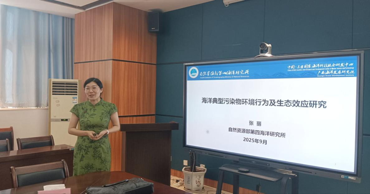 随后,张丽副研究员以《海洋典型污染物环境行为及生态效应研究》为主题,进行了精彩分享。她着重阐述了北部湾有机磷污染物的分布状况,以及OPEs(有机磷酸酯)的环境行为和生态效应研究进展,助力大家更为深入地掌握了OPEs等有机磷污染物的富集、放大以及生物代谢等相关知识。