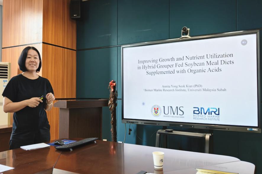 最后,杨淑娟博士以《利用有机酸补充大豆粕饲料以提升杂交石斑鱼的生长表现与营养利用效率》为题,围绕水产养殖营养学展开,研发以本地原料为基础的环保型杂交石斑鱼饲料,通过优化饲料配方提升养殖效益,同时推动可持续、负责任的水产养殖模式落地。
