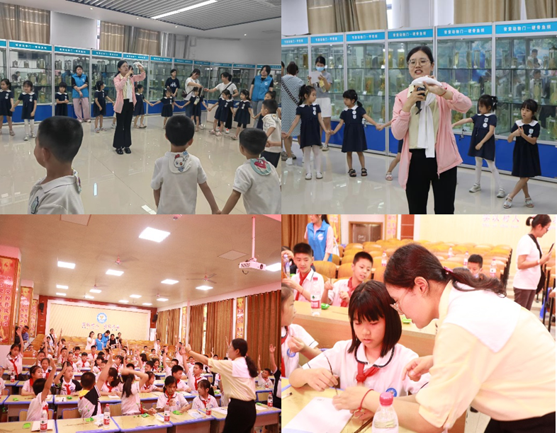在科普活动现场,首先由鲁栋梁教授给同学们讲解海洋环境危害的相关知识。他表示海洋环境危害日趋严重,保护海洋人人有责。紧接着,由海洋协会的赵海玲带领同学们制作彩泥红树林、参观标本馆等。在参观标本馆的过程中,通过讲解进一步加深了同学们对海洋生物的认识,提高同学们创新意识和实践能力。最后由王希龙博士与同学们开展“有奖问答”和盲人摸“鲸”小游戏,小朋友们都十分积极地举手回答问题,一个个笑得同向日葵般灿烂,现场氛围浓烈。