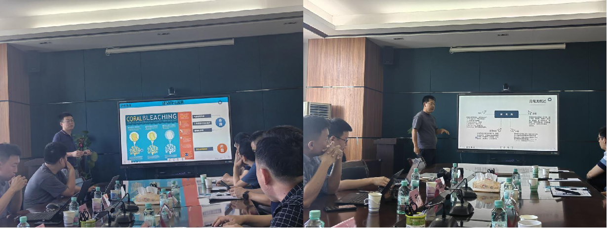 首先由郑新庆研究员作题为《珊瑚共生功能体对高温与酸化胁迫的生理响应及其分子机制》的报告,报告讲述了珊瑚白化的因素,进一步解析珊瑚共生功能的影响机制。随后由刘昕明副研究员作报告,题为《南海近岸异尾类(甲壳动物,十足目)甲壳动物分类及异尾类系统发育研究》,报告中讲述了南海近海异尾类分类和异尾类系统发育关系,共鉴定出异尾类生物3总科7科24属120种,丰富了南海异尾类区系信息。蓝文陆教授级高工作题为《北部湾海洋垃圾污染状况及防止对策》的报告,报告指出了海洋垃圾污染的分布地点以及为何如此分布,并提出了防治对策,分别对沿岸小码头、沿岸村庄及无人管理海滩、网红公路、海域浮筏养殖进行治理。接着由潘科研究员作《口罩塑料在海洋中的环境行为和生态效应》的报告,报告讲述了塑料垃圾威胁着渔业的发展,并解析了口罩材料和结构,呼吁人们正确规范的使用口罩,减少海洋污染。最后由王京真教授作题为《从源头到终点路径:环境-生物联动研究的一点思考》的报告,讲述了微塑料在鲸目类动物中的存在数量,表明了生物环境会影响鲸类动物的生长发育。