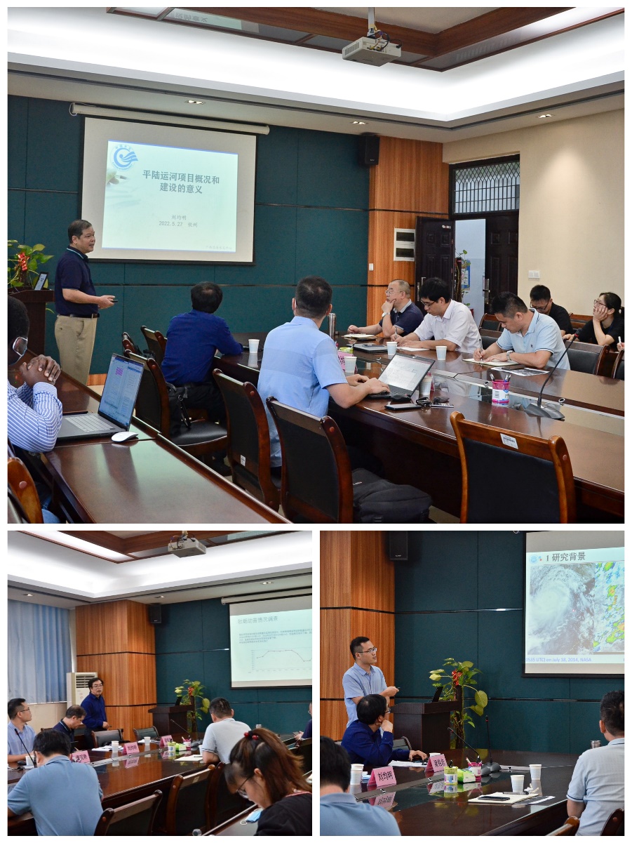 会议伊始,首先由刘均明高级工程师作了题为《广西沿海中小河洪水预报技术探讨》的报告。主要对广西沿海岸线、台风、潮汐、风暴潮灾害及规律、中小河流洪水预报概况、目前广西沿海水文采用的预报以及典型预报进行介绍,为广西沿海各级政府防灾减灾提供全面、科学的决策依据。随后由梁铭忠副教授作题为《平陆运河对茅尾海生态影响探讨》的报告,通过对茅尾海生态现状的研究,阐述了平陆运河航道建设对红树林地貌及生态影响分析。最后由谭沉艳博士作题为《中国热带气旋时空特征分析及其大风危险性评估》的报告,主要通过对热带气旋时空特征分析及热带气旋风场模拟研究各类气象灾害的特征,评估各类气象灾害的风险,不仅可以深入了解气象灾害的发生规律和影响风险,对气象灾害的预评估或预测工作更有积极的意义。