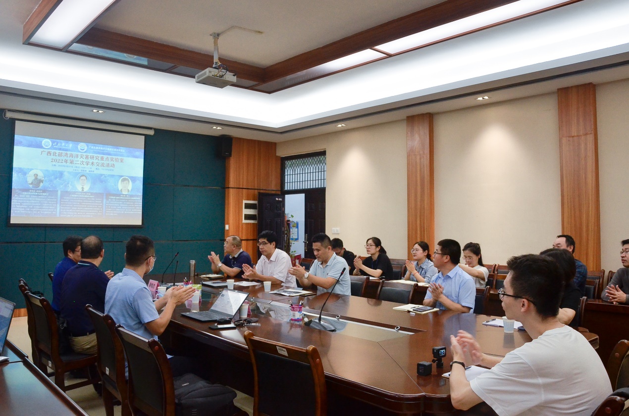 2022年5月27日上午9:00,广西北部湾海洋灾害研究重点实验室(以下简称“实验室”) 2022年第二次学术交流活动在北部湾大学海洋学院7A-229会议室召开。本次会议邀请了广西沿海水文中心刘均明高级工程师、实验室成员梁铭忠副教授和谭沉艳博士作报告,会议由鲁栋梁副教授主持,重点实验室成员和研究生参加了此次学术活动。