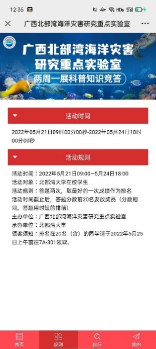 本次活动设置了线上有奖竞答、海洋灾害与污染科普知识讲座两大环节。