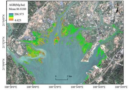 Figure 7. Aboveground biomass of mangroves in Maowei Sea area.