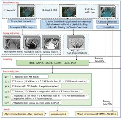 Figure 4. Technical route for estimation of aboveground biomass of mangroves in the Maowei Sea.