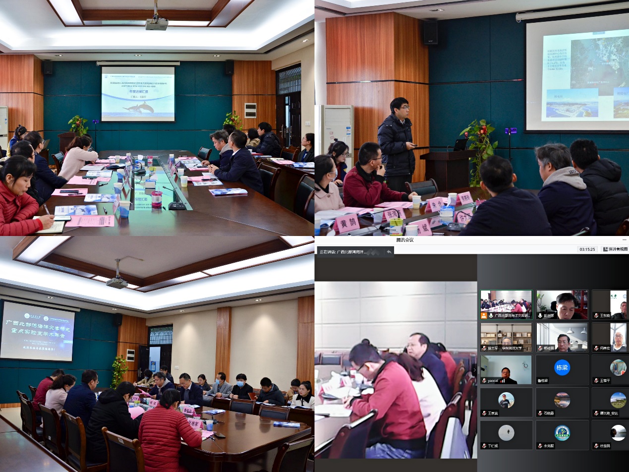 2021年12月31日上午9:00,广西北部湾海洋灾害研究重点实验室(以下简称“实验室”) 2021年度学术年会在北部湾大学海洋学院7A-229会议室召开。本次会议采用线上线下同步方式进行,重点实验室学术委员会副主任王东晓教授、杨桂朋教授;学术委员会成员石晓勇教授、姚才教授、余克服教授、于卫东教授、戴志军教授、于仁成研究员、谢强研究员、何伟宏研究员、黄鹄教授和彭世球研究员;北部湾大学科技处处长张海燕教授、副处长朱念教授;石油与化工学院院长尹艳镇教授、副院长张艳军教授;海洋学院院长许尤厚教授、副院长杨斌教授,以及重点实验室全体成员出席了本次会议,会议由王东晓教授和许尤厚教授共同主持。