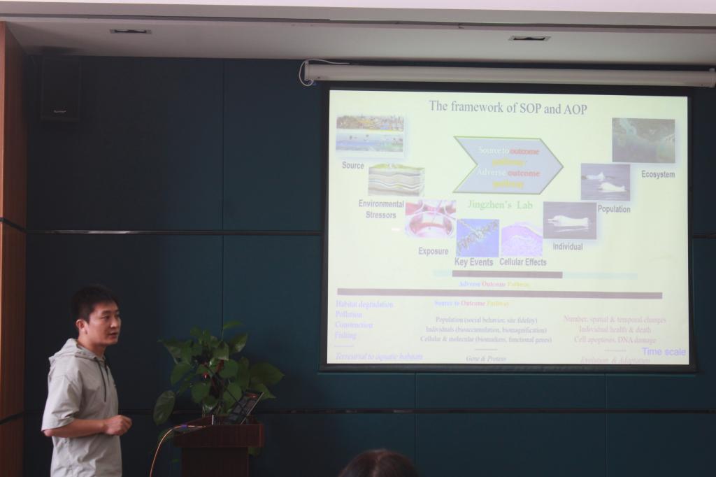 会议伊始,首先由王京真教授作了题为《Preliminary advances in cetacean research—in situ,in vitro,and in silicon》的报告。报告主要从鲸目动物及其种群层次进行探讨分析,围绕种群保护概念,指出对中华白海豚的保护可以对海洋下层食物链系统和生态系统产生有利的影响,提倡对其进行原地保护、迁移的廊道保护。在分析海豚致死现象是由人为引起,还是种群个体之间斗争引起进行了探讨。在死亡海豚体内发现了微塑料的存在,由此可见微塑料污染已威胁到了海洋生物的生存。最后呼吁政府、群众采取积极有效措施对海洋动物进行保护。