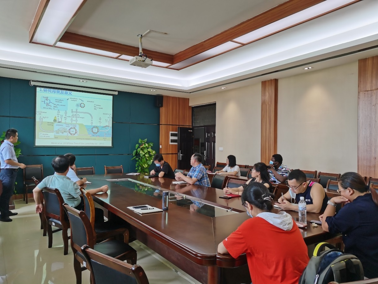 会议伊始,首先由鲁栋梁副教授作了题为《环茅尾海陆源氮污染物总量控制研究》的报告,根据在枯水期和丰水期分别做的两次陆海同步调查和现场培养实验的数据分析中,可知在茅尾海陆源氮污染物减排中,应采用不同形态氮和不同河流双重“差别化”减排方法实施,这对实验室开展相关研究工作具有一定积极意义。其次钟秋平教授作了题为《一株固氮蓝藻的N、P代谢特征研究》的报告,通过MWH-180901藻株最佳生长因子的实验数据结果和该藻株生长过程中氮磷代谢测定,得知胶质粘球藻(MWH-180901藻株)氮磷代谢显示的固氮现象,能有效的参与地球化学的氮、磷循环;对区域赤潮的发生、发展与消亡有良好的指导意义。
