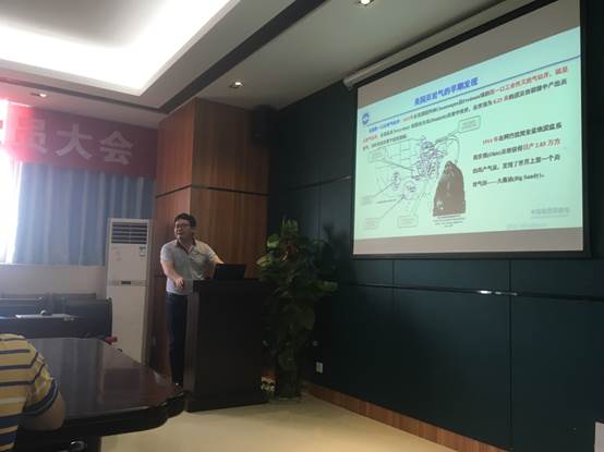 会议开始,龚斌教授介绍了中国地质调查局教授级高级工程师包书景。而后由包书景教授做了题为《页岩气特征与页岩气调查重大发现》的报告,报告详细的介绍了什么是页岩气、页岩气的特征、页岩气调查重大发现和我国页岩气开采前景等方面。潘磊博士做了题为《下扬子地区二叠系过成熟页岩甲烷吸附特征》的报告,主要从二叠系页岩有机地化特征、空隙结构特征、甲烷吸附特征进行了研究分析。