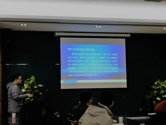 喻鹏博士详细介绍了杨海巍博士的简历以及其主要研究方向有岩土工程勘测技术、土工试验方法、地基处理、高边坡防治和深基坑处理;海洋测绘、海洋物探及钻探等;水文地质、工程地质、环境地质等。杨海巍博士的报告题目是《沙井岛水文地质、工程地质条件分析》,从专业角度对沙井岛的地质条件进行了详细分析,并就相关问题与实验室成员们展开了激烈讨论与交流,充分达到了学术交流的目的。