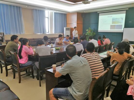 会议开始,黎树式研究员简单介绍了杨斌副教授和岳涛博士。之后由杨斌副教授作了题为《茅尾海沉积物磷形态季节变化特征及生物有效性》的报告,报告分析了沉积物粒度、有机质矿化、陆源输入、生物过程和养殖活动是影响茅尾海表层沉积物不同形态磷季节变化的重要因素,并指出茅尾海表层沉积物不同形态磷存在夏、冬季节性时空变化特征,同时夏季潜在的生态风险要高于冬季。岳涛博士的报告题目是《氮磷营养形态对棕囊藻生长的影响》,总结出球形棕囊藻能利用多种形态磷,大分子DOP在生长前期较慢,而相对于大分子DOP,DIP和小分子DOP更容易被球形棕囊藻吸收;球形棕囊藻能利用无机和有机氮源,硝态氮和尿素更适合其生长等结论。