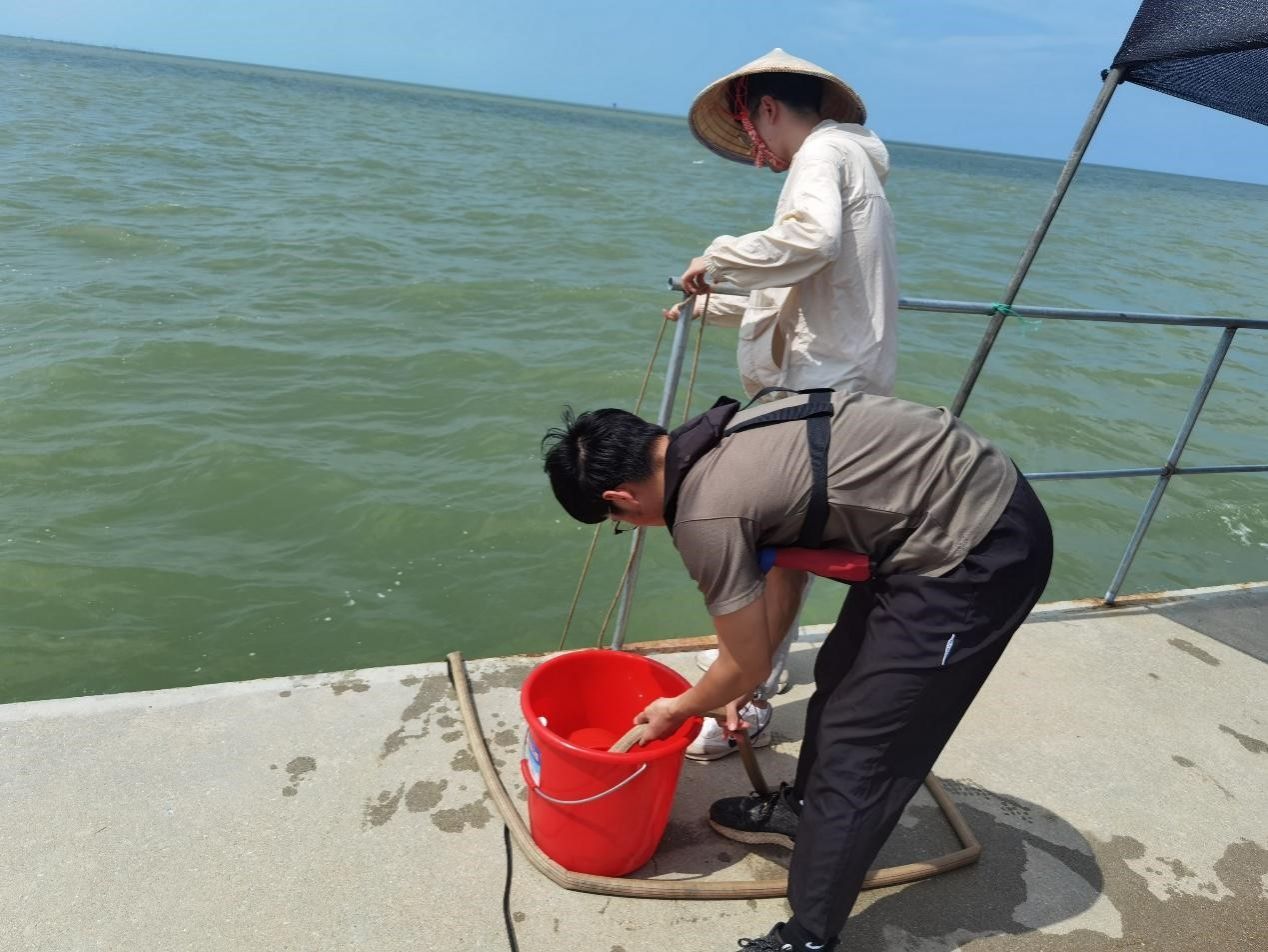 2024年7月13至15日,广西北部湾海洋环境变化与灾害研究重点实验室(以下简称“实验室”)前往钦州湾、大风江—三娘湾邻近海域开展夏季共享航次计划。参与本航次的调查还有中国海洋大学、江苏海洋大学等区外高校,共计30余名师生。由鲁栋梁教授、亢振军副教授、贺鹏博士、谭沉艳博士带队,经过3天的出海采样,实验室2024年度夏季共享航次圆满结束。