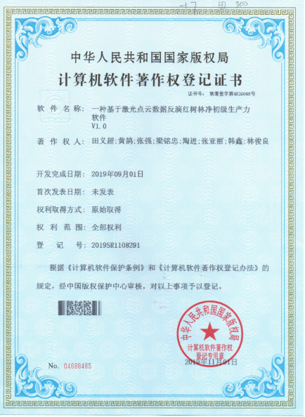 一种基于激光点云数据反演红树林净初级生产力软件V1.0证书